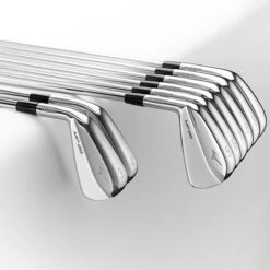 Noticeably shorter blade length and more compact from 7 iron to GW – for precision where most needed.